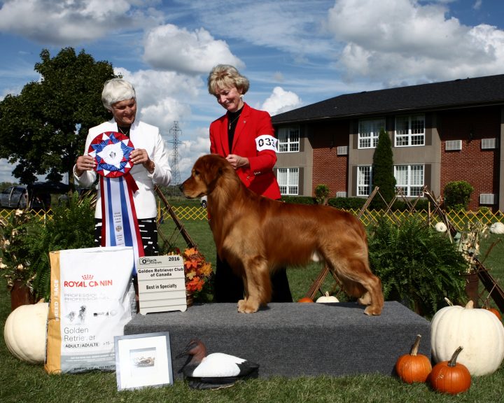 The latest addition MBBPIS YBFGoldens All Or Nothin JustB “B” is only 16 weeks old. He has already started to collect titles and ribbons with Multiple Best Baby Puppy in Show wins this past November.