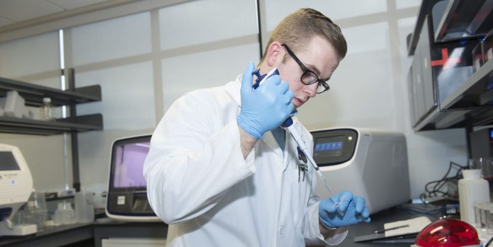 Justin Pater in the Craig L. Dobbin Genetics Research Centre.