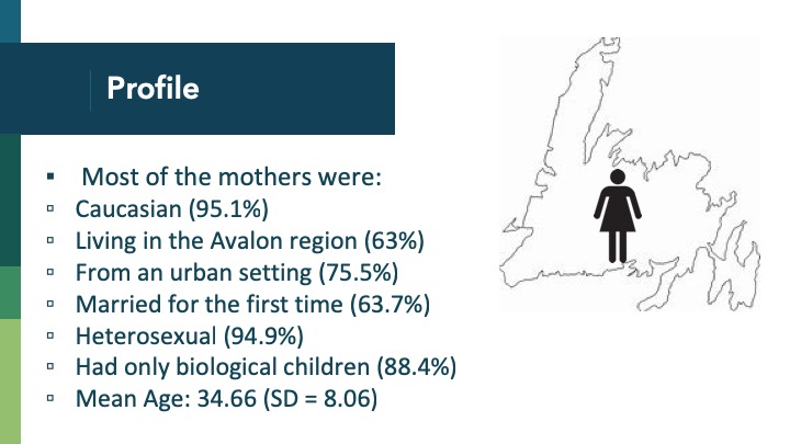 “With that data, we were able to create a demographic portrait of motherhood here in the province,” said Ms. Bedford. “One of the interesting things we found was that, in a lot of cases, there weren’t many differences between mothers.”