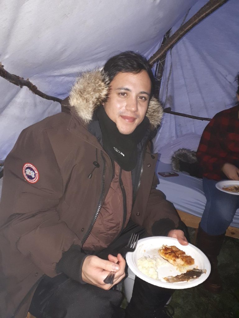 “The cultural experience trip to Sheshatshiu was definitely the highlight of my trip to Newfoundland and Labrador,” he continued. “I was fortunate enough to spend five days with Innu elder Elizabeth Penashue, constructing tents, making food I have never had before, hunting, snowshoeing, exploring.”