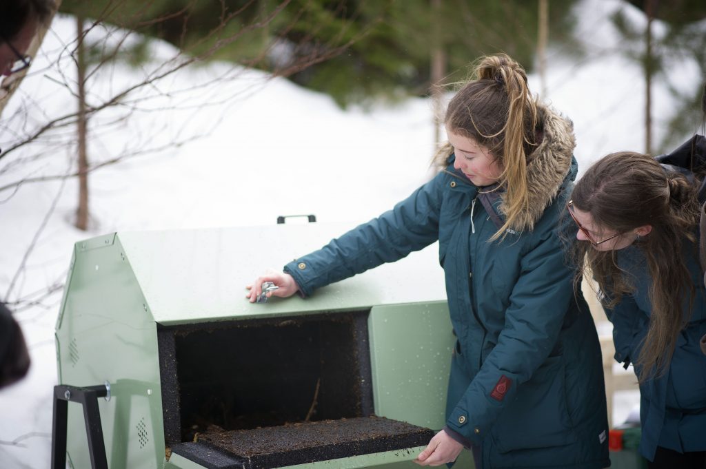 The tumbler composters serve the needs of the students residing in the chalet apartments, while the larger box composter is available for residence students and the general Grenfell community.